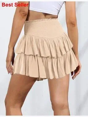 Ruffle Mini Skirt Smocked Waist A Line Flowy Tiered Casual