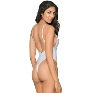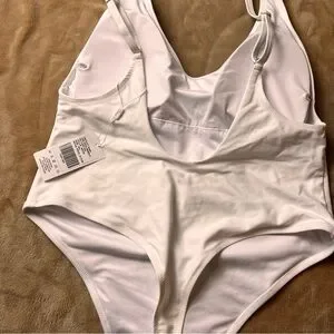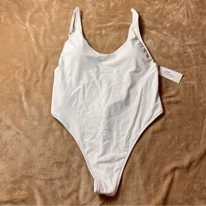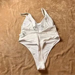 New with tags, classic, sexy white thong high-cut swimsuit with a deep V-neck and low scoop back. Perfect for vacation and spring break at the beach!