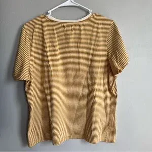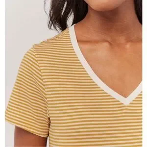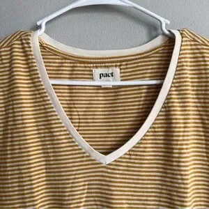 Pact Organic Softspun V-Neck Tee Cotton Mustard White Stripe XL