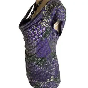 Vintage Y2K Purple Floral Top Tunic Embellished Retro Fairy Goth Medium