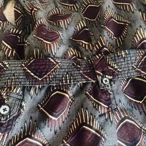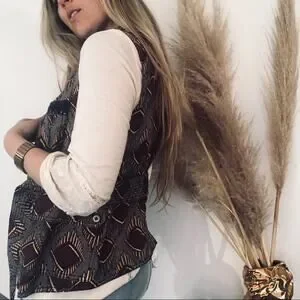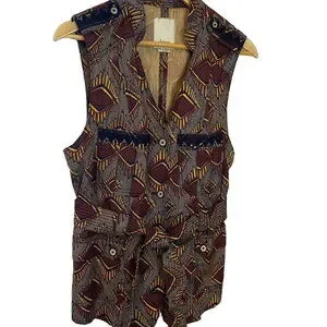 ANTHROPOLOGIE ELEVENSES Tribal Geometric Print Maroon Gold Belted Button Vest XS