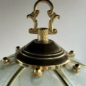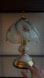 In fantastic condition for your cottagecore decorating. Floral glass lampshade with brass accents. Touch lamp has three brightness settings (shown in video).