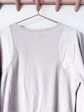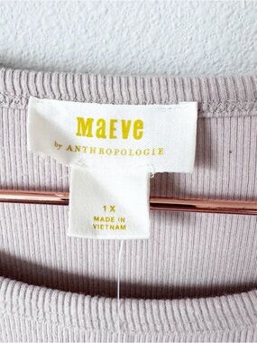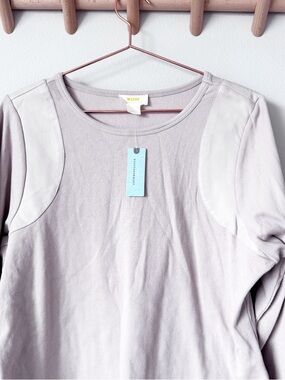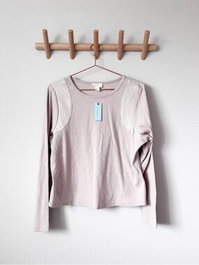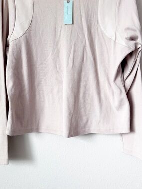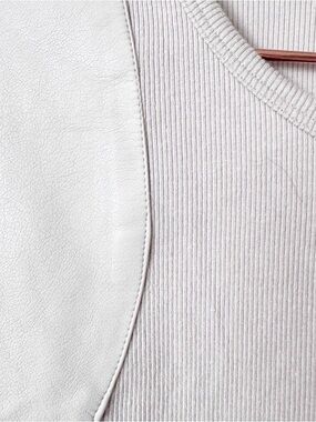 Anthropologie Maeve Beige Long-Sleeve Ribbed Faux Leather Insert Crew Pullover