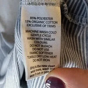 85% polyester, 15% organic cotton.