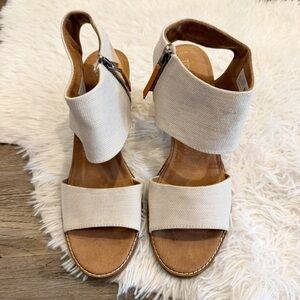 Toms Majorca Cream Linen Block Heel Sandal 11 Spring Summer Resort Europe
