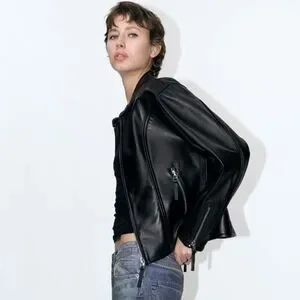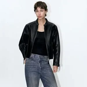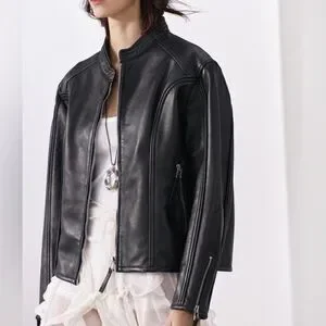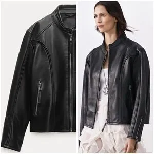 ZW COLLECTION ZIPPERED GENUINE LEATHER JACKET