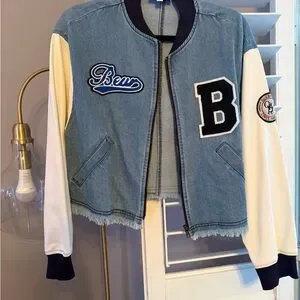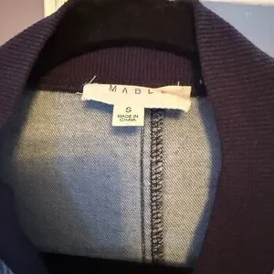 MABLE | Light Blue Denim Jacket with Navy Ribbed Collar | Sz S