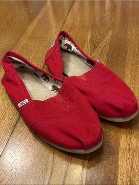 Woman’s Toms Alpargata red classic slip on shoe. Size 9.5. Canvas. Barely worn!