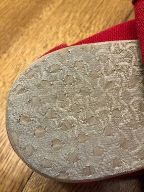 Womans’s Toms red Alpargata slip[ on shoe in size 9.5. Canvas upper. Soft padded inner sole. Elastic v gore for easy on and off. RMAT outsole. Barely worn! I have many quality shoes in my close. Check ‘em out!