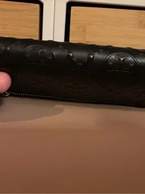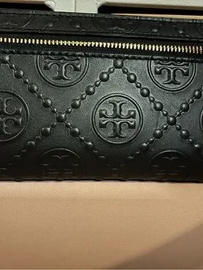 T Monogram Tonal Embossed Zip Slim Wallet, Black. Gently used. Some wear on the inside wallet. Overall in great condition. 12 credit card slots with plenty of space for cash. Large zipper on the exterior of the wallet for change.