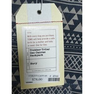 NEW! TOMS Trekker Tribal Geo Canvas Backpack in Navy Blue, Lots of pockets!
