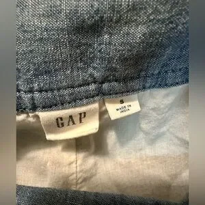 Easy, effortless chambray wrap midi skirt from GAP in a soft light blue wash. Lightweight with a denim look, this skirt is perfect for casual outfits, workwear, or warm-weather styling. Pair it with a simple tee, tank, or blouse for an easy, put-together outfit.