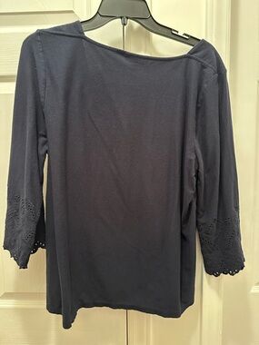 J. Jill Navy Eyelet Detail Long Sleeve Top