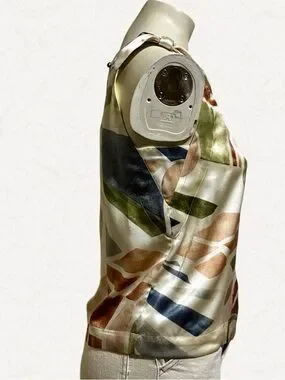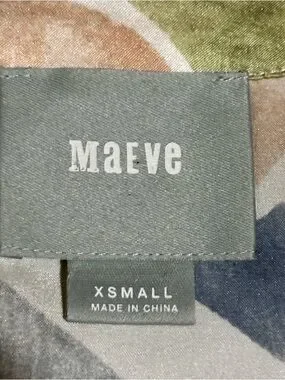 Anthro Maeve 100% Silk Geometric Tie Shoulder Blouse XS Boho