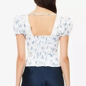 Reformation Alice Puff Sleeve Linen Top in Orlaya