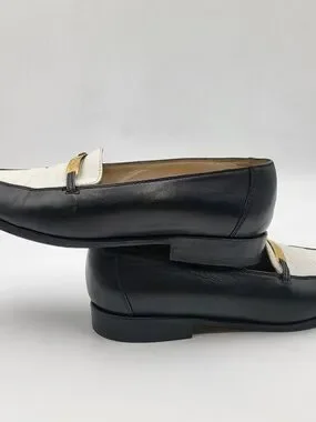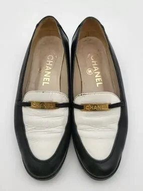CHANEL Two-Tone Leather Loafers in Black & White. Authentic...