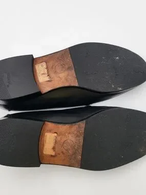 Classic CHANEL loafers in black and white leather. Gold CHANEL hardware across the vamp. Elegant, timeless design. Perfect for refined, everyday wear. These Loafers offer comfort. practicality and loads of style. Finition Main (Hand finished). Will look great with cropped trousers or skinny jeans. Made in France. These rare loafers are ir in good used condition and show normal signs of use on uppers. insoles and bottom soles been replaced, size UK4, EU37, US6.5, 24cm insole, 25cm outsole 8.2cm at widest point of sole heel 2cm Oval Toe Slip ons Chanel gold metal logo to fronts Chanel logo on insoles and soles leather uppers Leather insole Leather sole colour beige Finition Main (Hand finished) Made in France. Compared Comparables retails over $680 pre-owned.