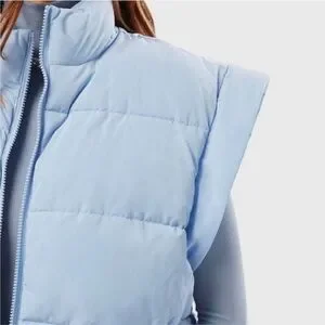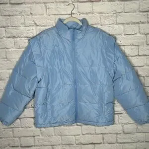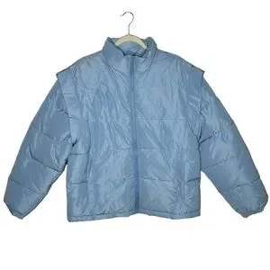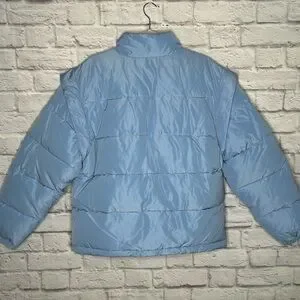 NWT WEWOREWHAT Snap Off Sleeve Puffer Jacket in Blue Bell