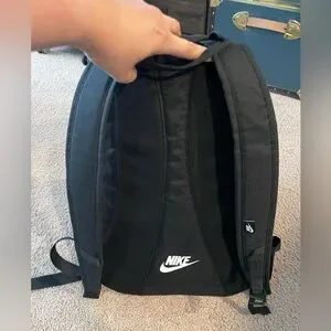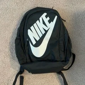 NIKE Sportswear Hayward Unisex Black Backpack, in black, padded adjustable sternum straps, padded mesh back, 100% polyester material, one main zip compartment with zip pocket and a slip pocket, a zip pocket on the front and a mesh stash pocket on either side. Made in Vietnam. Preloved, in excellent condition.