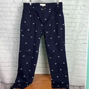10 Talbots Navy Embroidered White Whale Ankle Pant