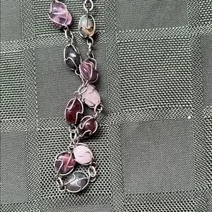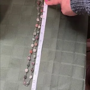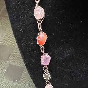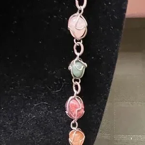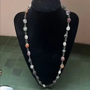 This elegant necklace features a stunning array of multicolor beads, perfect for adding a touch of sophistication to any outfit. The vibrant colors are beautifully complemented by a silver chain, making it a versatile accessory for any occasion.