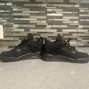 Sleek all-black Jordan high-top sneaker. Mesh and nubuck overlays for texture. Prominent Jumpman logo on the tongue. Classic lace-up design for secure fit.