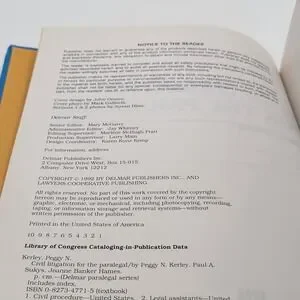 Kerley, Sukys, and Hames Civil Litigation for the Paralegal Hardcover 1992 First Printing Law Textbook Excellent. This comprehensive guide serves as an essential resource for aspiring legal professionals, offering a deep dive into the complexities of civil procedure within the United States legal system. The text is structured to provide a clear understanding of the litigation process, from initial pleadings to final resolution, ensuring a solid foundation for any paralegal career. With its practical approach and detailed explanations, this volume is an invaluable addition to any law student's library or professional's reference shelf. This book is in excellent condition with a clean cover and crisp pages. Suitable for law school studies, paralegal certification preparation, and professional legal reference.
