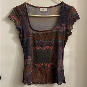 NATURAL LIFE DEVON MESH SHORT SLEEVE TOP IN VINTAGE PATCHWORK PRINT SMALL. Excellent condition