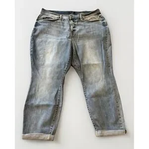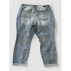 Judy Blue Womens 20W Boyfriend Fit Jeans Light Wash Stretch Cuffed JB82335