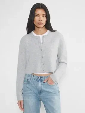 This is a fully fashioned crewneck cardigan designed for a relaxed fit. It's made with Aritzia’s Cashmere — perfectly balanced midweight 100% Grade-A cashmere coveted for its unparalleled softness and warmth. The finest available. This cashmere is certified to The Good Cashmere Standard®. This garment is constructed with a Jersey stitch for a soft drape and a smooth, flat feel.