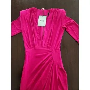$299 retail-NWT-Nooki REVOLVE Farrah Plunge V-Neck Gown-Cerise(deep pink)-Small