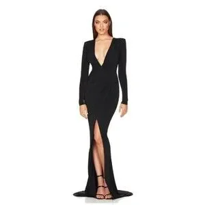 NOOKIE WOMEN'S FARRAH PLUNGE V-NECK GOWN DRESS SIZE SMALL -