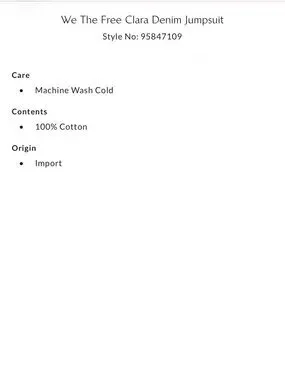 NWOT Free People We The Free Clara Denim Jumpsuit