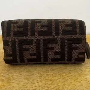 Elevate your vintage collection with this elegant FENDI Zucca cosmetic/vanity pouch. A timeless small accessory collectible from the classic FF monogram era. A small monogram luxury good that’s perfect for travel or everyday essentials.
