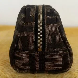 Fendi vanity/makeup case in exceptional condition, crisp corners no rubs, wear, loose or missing stitches. Immaculate interior no stains, tears, or odor. Top close zipper with original FF logo zipper pull operates flawlessly. Carry as a luxury grab and go, or inside a larger handbag.