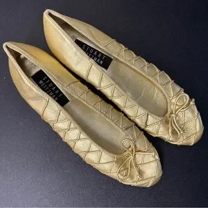 Stuart Weitzman Metallic Gold Quilted Ballet Flats with Bow