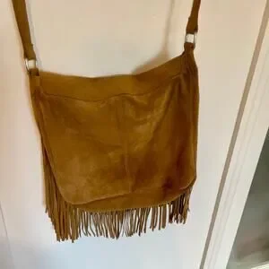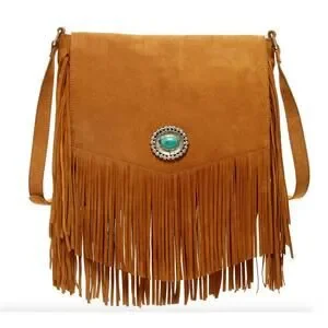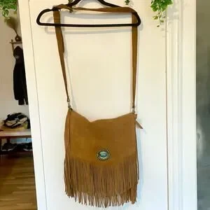 Ten79LA Ricky Suede Tan Crossbody Bag Fringe Western Native Inspired