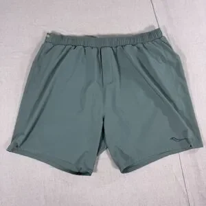 Saucony Running Shorts Mens XXL Sage Green Excellent 7 Inch Inseam Lined Pocket