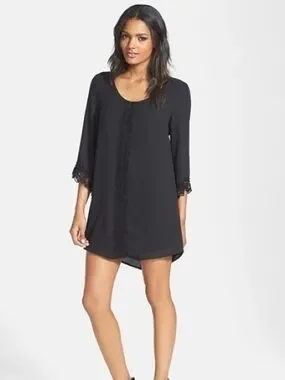 ASTR Black Lace-Trim Swim Coverup Tunic
