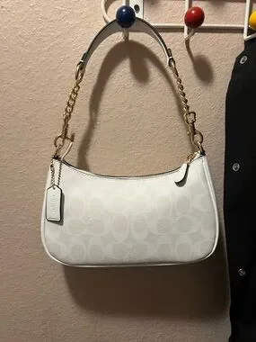 COACH White Signature Logo Shoulder Bag with Gold Hardware