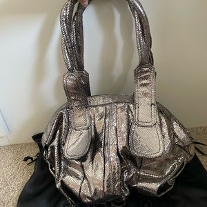 Gustto Cala Leather Satchel Bag - Metallic "Old Silver" - Rare