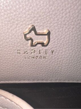 The interior is exceptionally clean with three compartments, including a secure zip pocket—perfect for keeping essentials neatly organized. Finished with gold-tone hardware and the signature Radley Scottie logo.