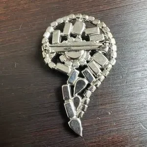 Vintage Unsigned Brooch Pin Paisley Clear Baguette Rhinestone Swirl