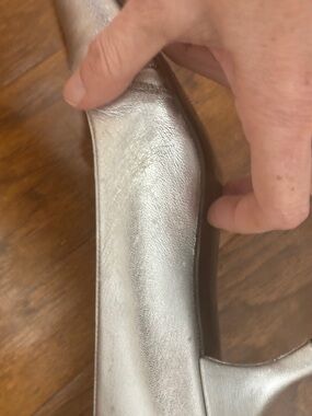 Sleek pointed-toe flats with a metallic finish. Smooth leather upper with subtle braided trim at the vamp. Padded insole for everyday comfort. Neutral metallic shade pairs easily with many outfits.
