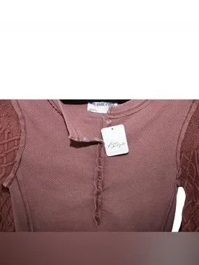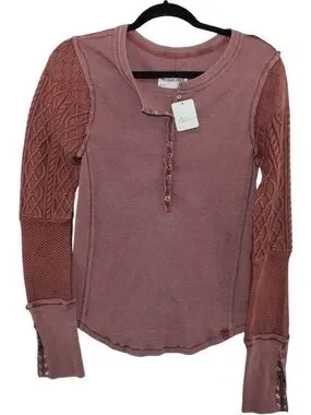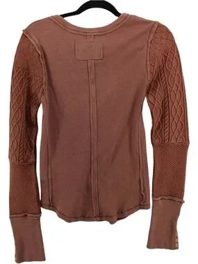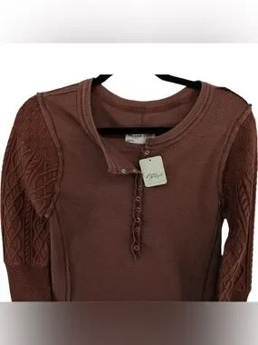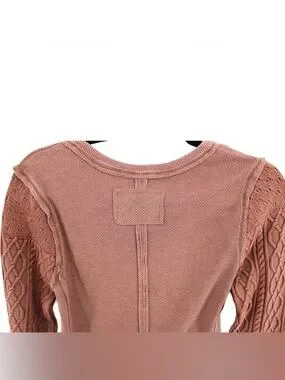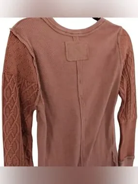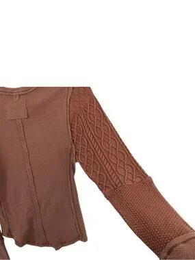 We The Free Twisted Cable Cuff Henley - Caramel Cafe