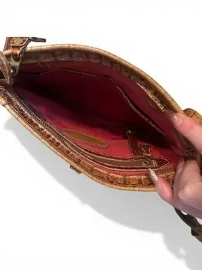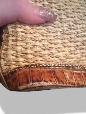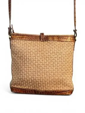Brahmin Vintage Straw Woven Crossbody Bag Croc Leather Trim Boho Summer