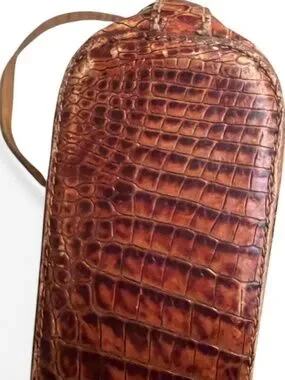 • Croc-embossed leather trim + strap