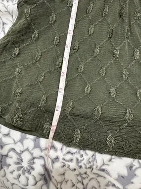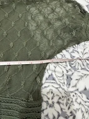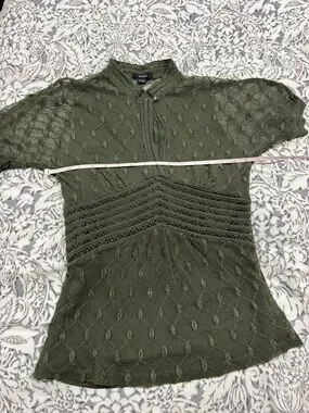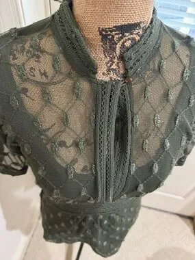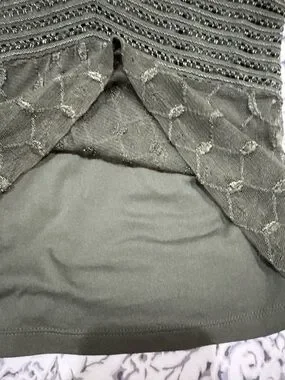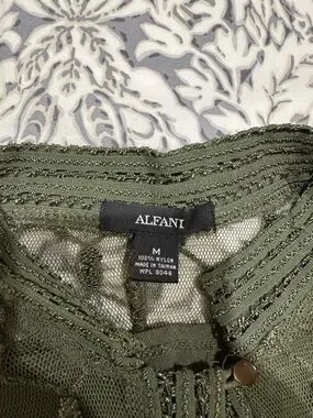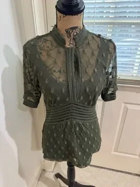 Alfani Olive Crochet Lace Mock-Neck Short Sleeve Top size M