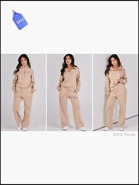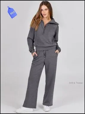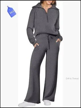 Style: Half-zip long sleeve oversized sweatshirt & high-waist drawstring wide-leg sweatpants