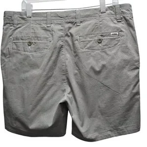 ROWM Mens Size 38 Geometric Micro Print Chino Shorts Grey White Stretch Cotton